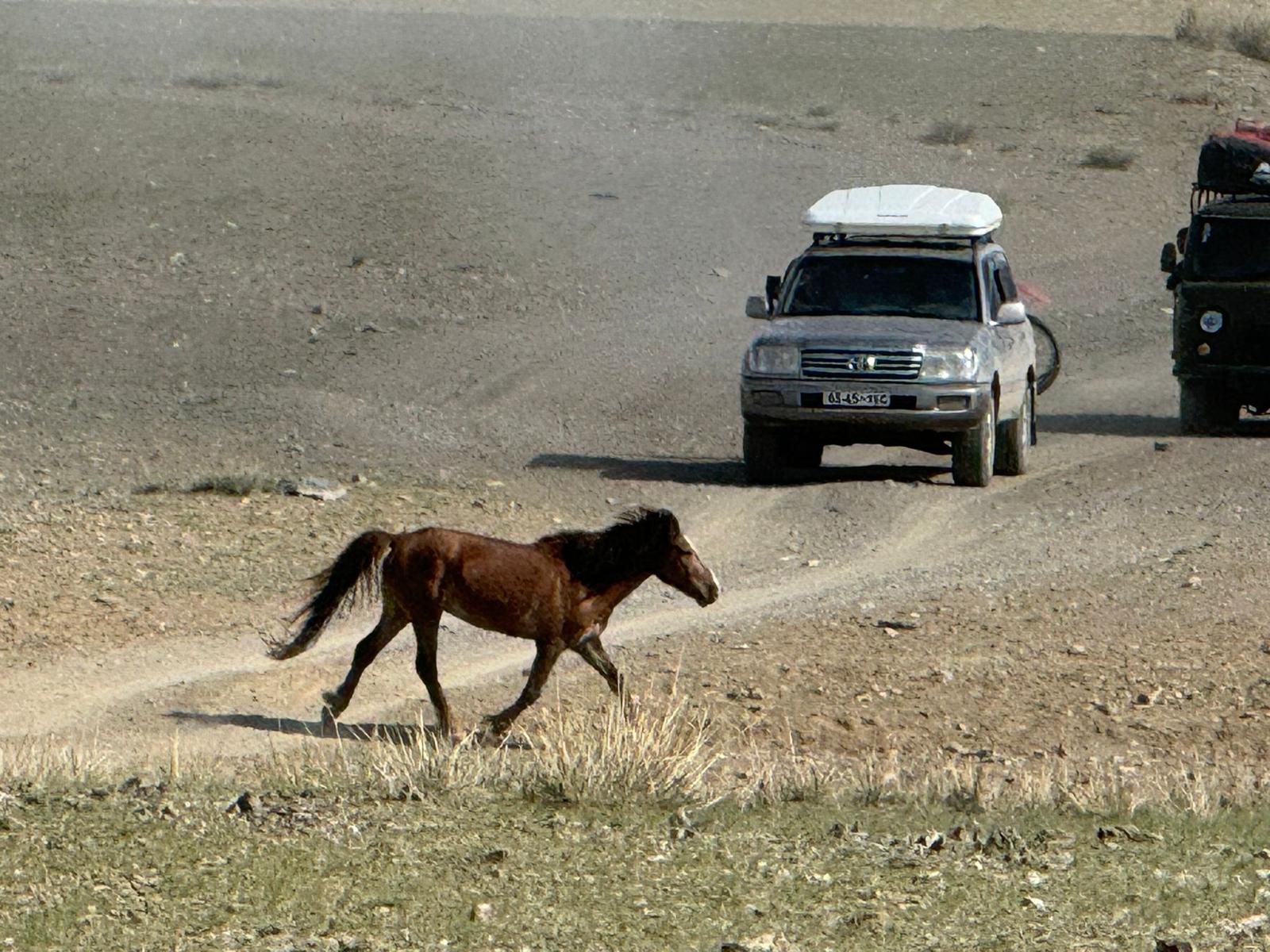 Weiter geht es Richtung Westen. Unterwegs begleiten uns immer wieder Wildpferde. Die Nomaden mit ihren Kindern hüten Schafe und Yakherden. Ein kaltes Bier bei der Ankunft oder auch ein Glas Weisswein – wir werden den Staub des Tages genussvoll runterschlucken. Heute bauen wir zum zweiten und auch schon letzten Mal unser Zeltlager auf uns lassen uns von unserem Koch mit einem BBQ verwöhnen.