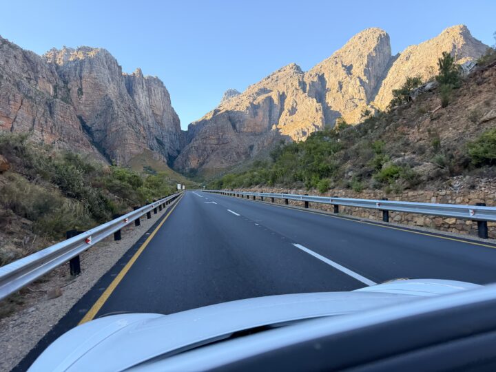 Ein langer aber eindrücklicher Fahrtag, der uns zunächst nach Osten in die Tsitsikamma Region führt. Dann gelangen wir endlich auf die Route 62. Roadtrip Feeling pur! Über Uniondale geht’s weiter ins karge, hügelige Hinterland. Dann überrascht uns eine atemberaubende Schlucht, die uns zu den Meiringspoort Wasserfällen führt. Am Abend erreichen wir Oudtshoorn, bekannt für seine Straussenfarmen.
